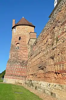 Plusieurs vestiges de la période gallo-romaine ont été mis au jour en Sarthe. L'enceinte romaine du Mans a été édifiée à la fin du IIIe siècle pour résister aux invasions barbares. Elle forme un quadrilatère irrégulier de 450 m de long sur 200 m de large[34]. Sur la commune d'Aubigné-Racan, dans le sud du département, le site archéologique de Cherré regroupe un théâtre, un forum, un temple, des thermes ainsi qu'un aqueduc[35]. Au Mans, un trésor de 152 pièces d'or gauloises a été découvert sur les bords de l'Huisne au début des années 1990[36],[37].