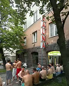 Une autre forme de sauna qui a presque disparu est le sauna public de ville. Ces saunas publics ne sont plus indispensables car presque tout le monde a accès à un sauna privé ou à un sauna de maison[11].