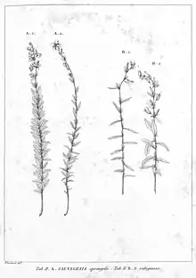 « Sauvagesia Sprengelii. — S. erecta. Spfeng. Eudeck. i. p. 296, excl. syn. — S. caule suffruticoso, erecto , vix ranioso; foliis parvis, lanceolatis, acutis, remotiuscule serratis; racemo terminali; calycinis laciniis inaequalibus , obtusissimis, corollae brevioribus; foliis numerosis.