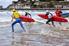- Board Race (Paddle Board) : les sauveteurs s'élancent d'une ligne de départ, rament avec leur planche jusqu'à une ou plusieurs bouées, qui symbolisent un noyé, et reviennent jusqu'à la plage le plus rapidement possible.