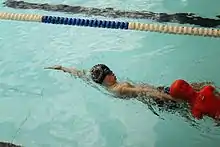 - Relais 4 × 50 m obstacles : quatre nageurs se relayent sur 50 m en passant sous des obstacles placés à 12,50 m du bord.