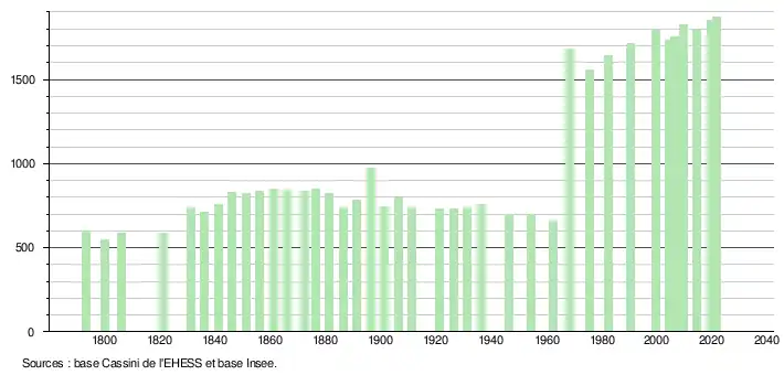 En 2021, la commune comptait 1 868 habitants[Note 5], en augmentation de 5,36 % par rapport à 2015 (Gironde : +6,88 %, France hors Mayotte : +1,84 %).