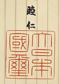 - (en) Cet article est partiellement ou en totalité issu de l’article de Wikipédia en anglais intitulé « State Seal of Japan » (voir la liste des auteurs).
