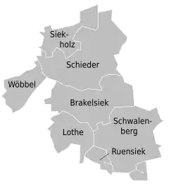 | Quartier | Habitants (2007) | Quartiers de Schieder-Schwalenberg ![]() |