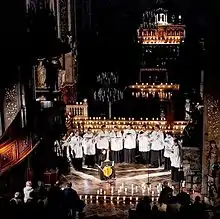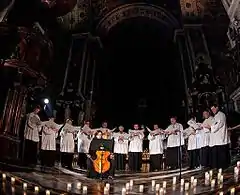 La schola, comptant 25 membres en 2016, est chargée d'effectuer son exécution dans les deux domaines, depuis sa fondation[4].
