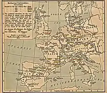 La civilisation médiévale occidentale atteignit alors son âge d'or. En fait, les universités médiévales découlent des écoles cathédrales et des écoles monastiques où l'on enseigne le sacré comme le profane[11].