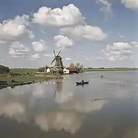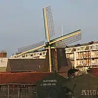 - moulin à galerie (stellingmolen) avec grange de sciage, la galerie (stelling) permet ici d'atteindre le moulin et les ailes du moulin.