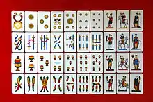 Traditionnellement, les carreaux remplacent les deniers pour le comptage des points (les épées sont les piques, les coupes les cœurs, les bâtons les trèfles).