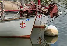 - Les insignes sont spécifiques, ainsi les signes d'engagement sont marqués par une ancre. Ils reprennent la forme de la croix de chaque association où la base de celle-ci se poursuit par une ancre.