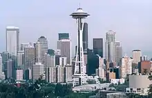 D’autres entreprises de haute technologie se sont installées dans la banlieue de Seattle comme Microsoft, Google, Amazon, RealNetworks, McCaw Cellular (maintenant AT&T Wireless), VoiceStream (maintenant T-Mobile), Philips, Boston Scientific, ZymoGenetics et Amgen. Ces firmes attirèrent énormément de travailleurs et la population augmenta de 50 000 personnes entre 1990 et 2000 selon le recensement américain de 2000[46] tout en développant la construction de bureaux dans la ville[47] comme dans les autres grandes villes américaines que sont San Francisco, New York, Los Angeles et Boston. Ces compagnies restent puissantes mais le boom s’est arrêté au début de l’année 2001 après un pic du NASDAQ en [48],[49].