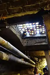 La lumière traversant une grille d'une rue de Seattle, vue depuis le Seattle Underground.