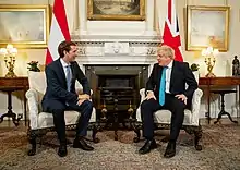 Le , il annonce un accord de coalition avec Les Verts - L'Alternative verte, qui obtient la création d'un ministère de l'Environnement et la fonction de vice-chancelier pour son dirigeant Werner Kogler[34]. Le nouveau gouvernement est assermenté le [35].