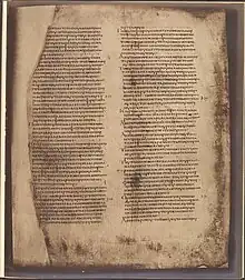 Fac-similé photographiques d'une des pages des épitres de Clément dans le Codex Alexandrinus