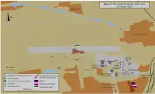 Le , les forces ukrainiennes admettent avoir perdu le contrôle de l'aéroport[16]. Celui-ci n'est plus qu'à l'état de carcasse.