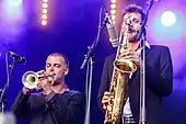 Section de cuivres du groupe Jim Murple Memorial au Festival de Buguélès en 2016.
