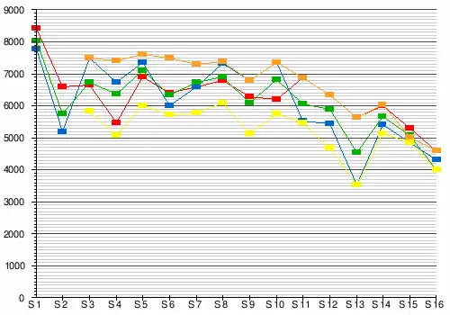 | 8 | 6,79 | 6,30 | 7,39 | 6,60 | 7,29 | 6,30 | 7,19 | 6,10 | 7,16 | 6,34 | 7,30 | 6,57 | - | - | - | - | 6,79 | 6,57 | 6,90 | 6,10 | 7,39 | |