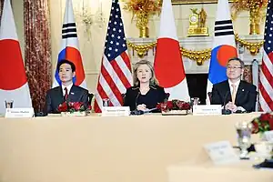 - (en) « DPA, « South Korean, US and Japanese foreign ministers to meet », Monsters and Critics News, 25/11/2010 »(Archive.org • Wikiwix • Archive.is • Google • Que faire ?)
