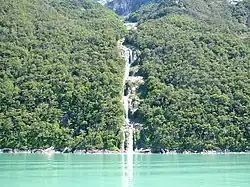 Cette entrée marine a les caractéristiques d'un fleuve côtier et draine les eaux d'un bassin très étendu. Il reçoit en effet, la quasi-totalité des eaux de surface du parc national Torres del Paine à travers le río Serrano. Le fjord occupe une ancienne vallée glaciaire[2].
