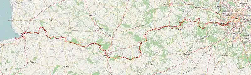 À partir de Dreux, il fait plusieurs incursions allers-retours entre les départements d'Eure-et-Loir de la région Centre-Val de Loire et de l'Eure en Normandie. Il passe un peu par les Pays de la Loire, une première fois, juste avant d'arriver à Alençon où le sentier entre dans la Sarthe et une seconde fois, plus tard, brièvement dans la Mayenne.