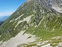 - Étape 2: Cette deuxième étape relie Le Pontet au refuge de la Perrière au travers des alpages. Le refuge non gardé de la Perrière contient 18 places et a été rénové en juin 2020 par l'association Tous à Poêle[10]. Cette étape à une durée de 8h et possède un dénivelé positif de +1800m pour un négatif de -900m sur une distance de 16km.