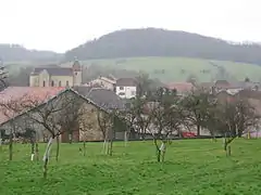 La colline de Bourlémont, surmontée par la chapelle Notre-Dame-du-Haut.