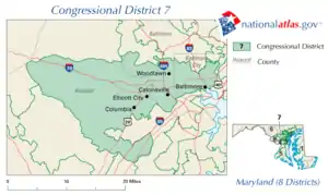 Le 7e district congressionnel du Maryland est un district de l'État américain du Maryland, il englobe presque toute la ville de Baltimore et une partie du Comté de Baltimore. Le district a été créé à la suite du recensement de 1790, qui a donné au Maryland un Représentant supplémentaire à la Chambre. Il a été aboli en 1843 mais a été restauré en 1950 en tant que district de l'ouest de Baltimore. Il est désigné comme un district à majorité afro-américaine depuis 1973. Le Démocrate Kweisi Mfume est le Représentant actuel, remportant une élection spéciale le 28 avril 2020, pour terminer le mandat d'Elijah Cummings, décédé en octobre 2019[1]. Mfume avait précédemment occupé le siège de 1987 à 1996.