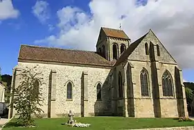 Contrairement à ce que suggère la fenêtre gothique flamboyante du chevet, qui n'est pas antérieure à la fin du XVe siècle, les parties les plus anciennes sont le chœur voûté en berceau, la base du clocher et le clocher lui-même, qui abritent des chapiteaux romans d'une facture archaïque, et devraient remonter à la période comprise entre 1110 et 1125 environ. La mouluration des arcs-doubleaux est loin d'être la règle à cette époque, ce qui confère à l'église un rôle de précurseur. Le clocher est quant à lui un prototype des clochers en bâtière à colonnettes d'angle du Vexin français.