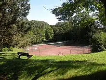 • Lavoir couvert en atrium : Son bassin est alimenté par l'eau pluviale grâce à un système de rigoles. Le toit à quatre versants prend appui sur quatre poteaux en fonte. Des murs ferment le lavoir de trois côtés[36].