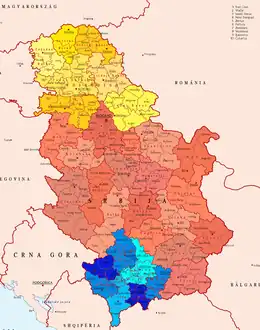 La Serbie (/sɛʁ.bi/), en forme longue la république de Serbie (en serbe : Srbija (/sř̩.bi.ja/) et Republika Srbija, en serbe en écriture cyrillique : Сpбија et Република Сpбија), est un État des Balkans occidentaux et de l’Europe du Sud et du Sud-Est, parfois situé en Europe centrale[6] ; son régime politique est de type démocratie parlementaire monocamérale. La Serbie est frontalière de la Roumanie à l'est-nord-est, de la Bulgarie au sud-est, de la Macédoine du Nord au sud-sud-est, du Kosovo ou de l'Albanie au sud[alpha 1], du Monténégro au sud-ouest, de la Bosnie-Herzégovine à l'ouest, de la Croatie au nord-ouest et de la Hongrie au nord-nord-ouest. Sa capitale est Belgrade.