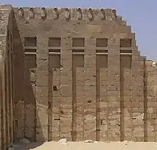 Il représente la façade significative d'architecture en niche du palais royal se prolongeant par un cadre de longueur variable représentant les murs du bâtiment en perspective cavalière. Ce motif (de) est particulièrement reprit dans l'art et l'architecture égyptienne en symbole d'appartenance à la cour royale[1],[2].