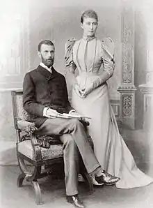 Tout d'abord, la princesse Élisabeth de Hesse-Darmstadt refuse l'offre de mariage[11] ; la reine Victoria, grand-mère d'« Ella » nourrissant des sentiments anti-russes, elle s'oppose à l'union du grand-duc et de sa petite-fille orpheline de mère. Néanmoins, les sœurs de la princesse allemande exercent une pression sur Élisabeth en vue d'un mariage politique ; toutefois, il lui est laissé libre choix[11]. Le couple séjourne ensemble pendant quelque temps à Wolfgasten à Darmstadt. Finalement en septembre 1883, la princesse Élisabeth accepte d'épouser le grand-duc[17]. Leurs fiançailles sont annoncés publiquement le , puis le grand-duc revient à Darmstadt rendre visite à sa jeune fiancée[18]. Le mariage est célébré au Palais d'Hiver à Saint-Pétersbourg le . Après le mariage et la conversion à la foi orthodoxe russe, la princesse Élisabeth devient la grande-duchesse Élizaveta Fiodorovna[19].