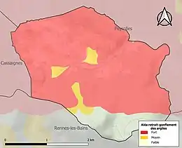 Le retrait-gonflement des sols argileux est susceptible d'engendrer des dommages importants aux bâtiments en cas d’alternance de périodes de sécheresse et de pluie. 87,4 % de la superficie communale est en aléa moyen ou fort (75,2 % au niveau départemental et 48,5 % au niveau national). Sur les 47 bâtiments dénombrés sur la commune en 2019, 47 sont en aléa moyen ou fort, soit 100 %, à comparer aux 94 % au niveau départemental et 54 % au niveau national. Une cartographie de l'exposition du territoire national au retrait gonflement des sols argileux est disponible sur le site du BRGM[24],[Carte 3].