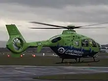 | Great Western Air Ambulance Charity (en) | Helimed 65 | G-GWAC | EC-135 | ![]() G-GWAA EC135. C'était l'hélicoptère précédent de l'organisme de bienfaisance. |