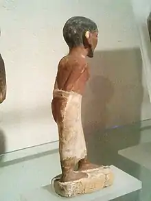 - Bȝk : Le terme bȝk est la forme la plus controversée quant à sa traduction. Il semble s'agir davantage d'un serviteur[17]. Néanmoins, une stèle de l'Ancien Empire décrit l'acquisition de Bȝk.w[18], prouvant la possibilité de transfert de propriété.