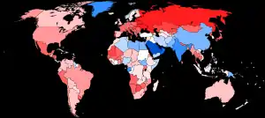 Le sex-ratio pour l'ensemble de la population mondiale est d'environ 101 hommes pour 100 femmes (2021 est. )[7]. Les sex-ratios humains, soit à la naissance, soit dans l'ensemble de la population, peuvent être rapportés de quatre manières : le rapport hommes-femmes, le rapport femmes-hommes, la proportion d'hommes ou la proportion de femmes. S'il y a 108 000 hommes et 100 000 femmes, le rapport hommes/femmes est de 1,080 et la proportion d'hommes est de 51,9 %. La littérature scientifique utilise souvent la proportion d'hommes. Cet article utilise le ratio hommes-femmes, sauf indication contraire.