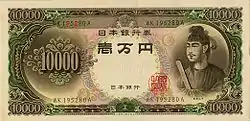 Deux billets de banque à l'effigie de Shōtoku ont été mis en circulation par la Banque du Japon[23]: