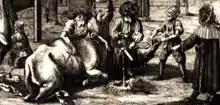 Shehita, Allemagne XVIIIe siècle (illustration tirée de Paul Christian Kirchner, Jüdisches Ceremoniell - Beschreibung jüdischer Feste und Gebräuche, 1734) | |
