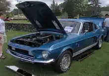 La transformation du coupé Mustang Fastback en voiture de hautes performances se fera dans les ateliers de Carroll Shelby à Venice, en Californie. Si la voiture est aisément reconnaissable à sa livrée blanche barrée de bandes bleues et à son capot en polyester doté d'une prise d'air, les principales différences qui la distinguent des Mustang de série sont dissimulées au regard.