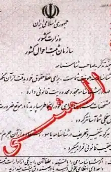 Le shenasnameh est annulé si le citoyen abandonne sa nationalité iranienne ou lorsqu'il décède[4].