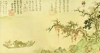 - En bateau au clair de lune sous les pins, 1423-1495, signé, poème de Yao Shou (1423-1495).