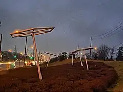 La sculpture intitulée « Boney Bus » (Bus osseux), qui représente la forme d'un bus en caricature, se trouve dehors l'entrée principale[2], près des espaces de stationnement vélos. Fait en aluminium et basalte, elle est créée par l'artiste John McKinnon[2] en 2000[3].