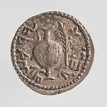 Denier en argent de Shimon bar Kokhba, daté entre 132 et 135. Dans la collection du Musée juif de Suisse.