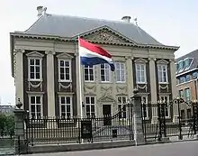 L'Hôtel de ville d'Amsterdam (le stadhuis), construit entre 1642 et 1648, et qui abrite aujourd'hui le palais royal, constitue le chef-d'œuvre de Jacob van Campen, pionnier du classicisme du nord des Pays-Bas. Il reflétait la position dominante de la ville d'Amsterdam dans l'influente province de Hollande aux États généraux et constitue aussi le plus grand édifice de ce genre à cette époque – c'est d'ailleurs une véritable prouesse d'ingénieur, puisqu'il avait fallu foncer au préalable quelque 13 569 pieux[29] dans le sol marécageux pour en poser les assises.
