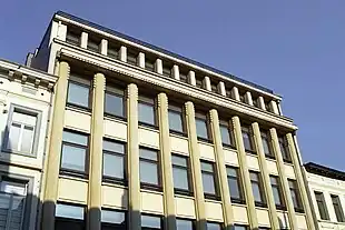 La façade du siège d'Électrorail présente cinq niveaux et neuf travées.