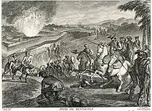Troupes espagnoles à l’assaut s’emparant d’un retranchement ou d’une redoute anglaise.