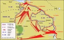 Le , la 18e division de fusiliers soviétique, appuyée par la 61e brigade blindée, encercle le point d'appui après des combats d'une violence inouïe ; mais les défenseurs tiennent toujours bon.