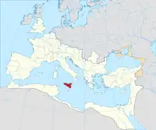 La Sicile a été une province de la Rome antique depuis la chute de Syracuse en jusqu'à l'invasion de l'île par les Vandales en 440 apr. J.-C., suivi de la reconquête byzantine en 533 apr. J.-C. Elle fait partie aujourd'hui de l'Italie.
