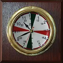 Secteurs de couleur rouge : Dans les secteurs de couleur rouge les stations radiotélégraphiques effectuent un silence radio obligatoire de h + 15 à h + 18 et de h + 45 à h + 48 sur la fréquence 500 kHz.