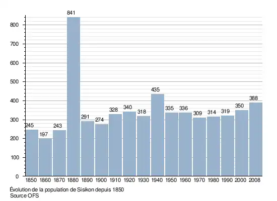 Le graphique suivant résume l'évolution de la population de Sisikon entre 1850 et 2008[3] :