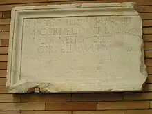 M(arco) Cornelio M(arci) f(ilio) Pap(iria) Pollio / M(arco) Cornelio Urbano / M(arco) Cornelio Céleri / Cornelia M(arci) l(iberta) Iucunda / sic nuncquam Fortuna sinat te nosse dolo[rem] / praeterisse potes quasm pie o iuvenis / sit datus dans flammas nosse doloris rit nunc petit i[---] / quisquis ades dicas sit tibi terra levis h(ic) [---]